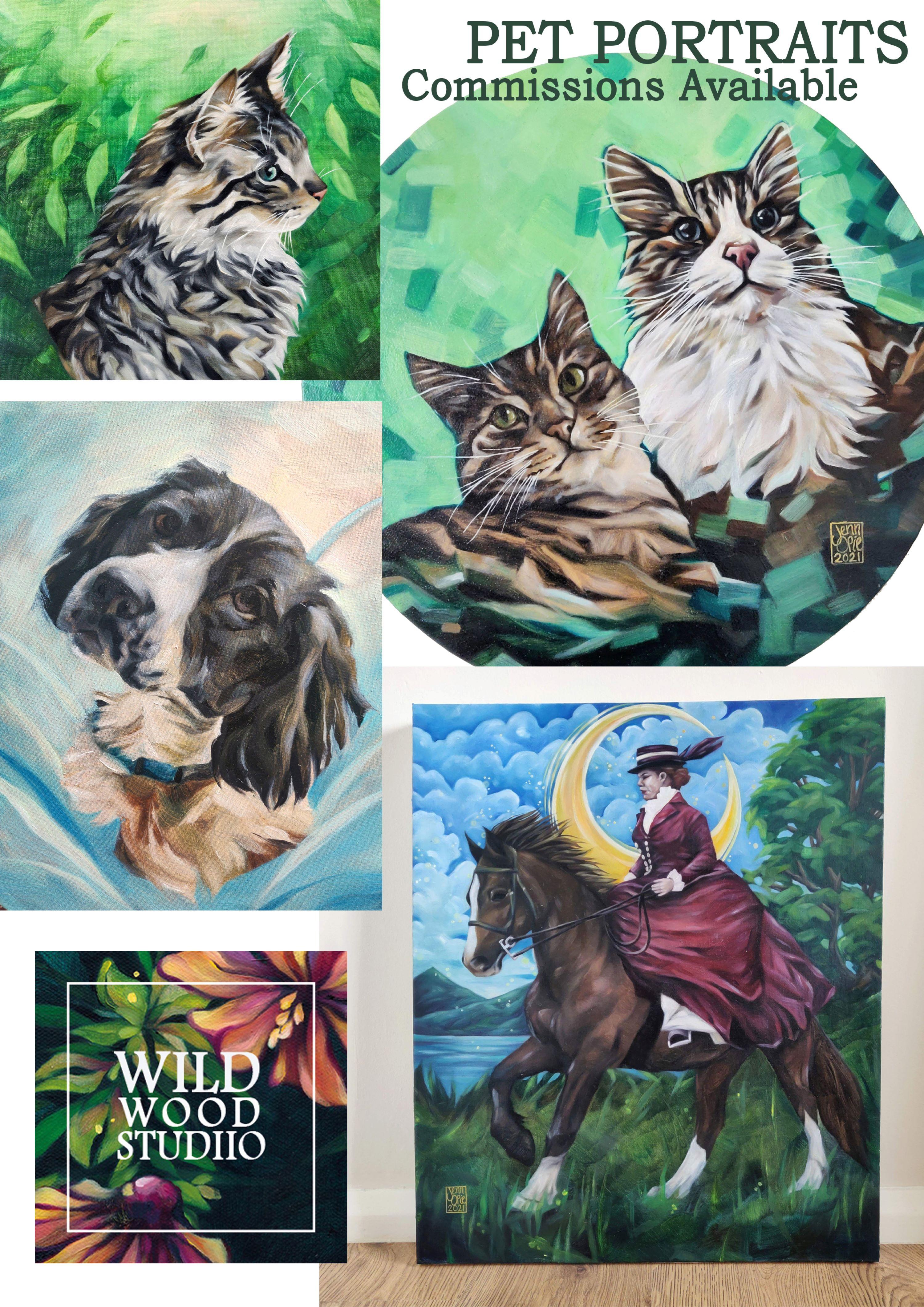 I am available to create custom artworks, including pet portraits, wall murals, window art and more.