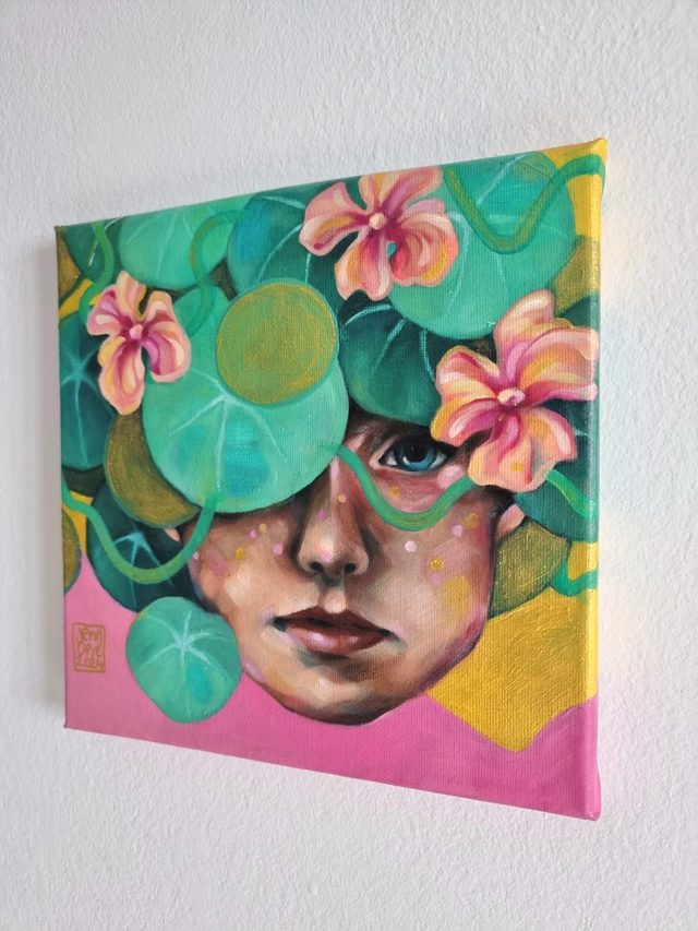Original square Flower Lady painting